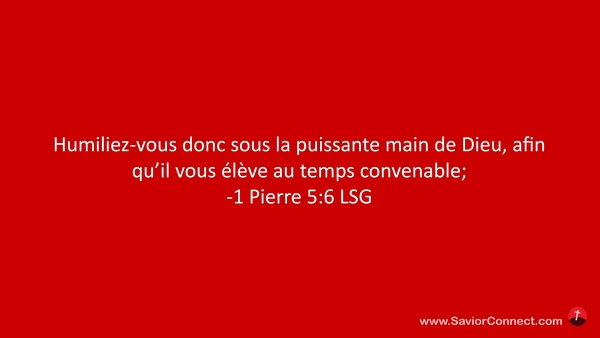 Humiliez-vous donc sous la puissante main de Dieu, afin qu'il vous élève au temps convenable; -1 Pierre 5:6 LSG