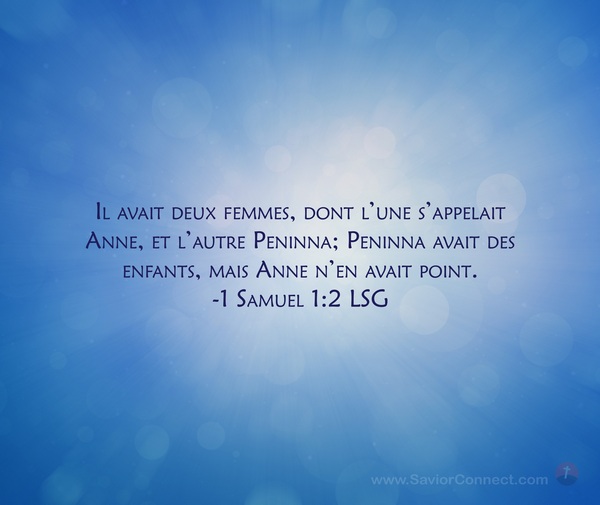 Il avait deux femmes, dont l'une s'appelait Anne, et l'autre Peninna; Peninna avait des enfants, mais Anne n'en avait point. -1 Samuel 1:2 LSG
