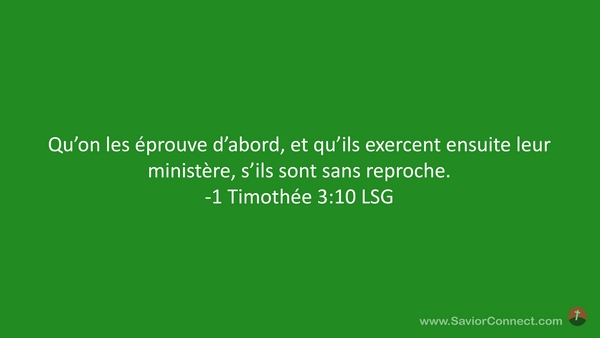 Qu'on les éprouve d'abord, et qu'ils exercent ensuite leur ministère, s'ils sont sans reproche. -1 Timothée 3:10 LSG