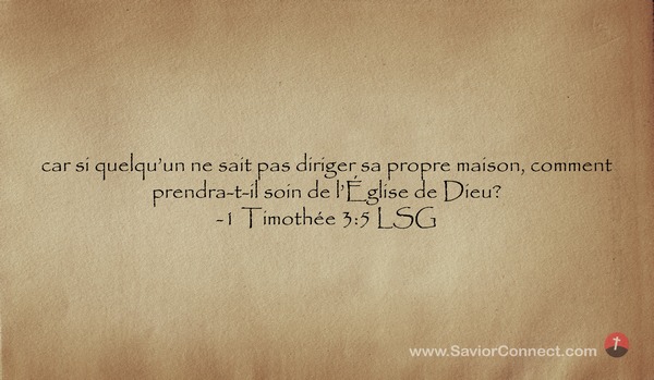 car si quelqu'un ne sait pas diriger sa propre maison, comment prendra-t-il soin de l'Église de Dieu? -1 Timothée 3:5 LSG