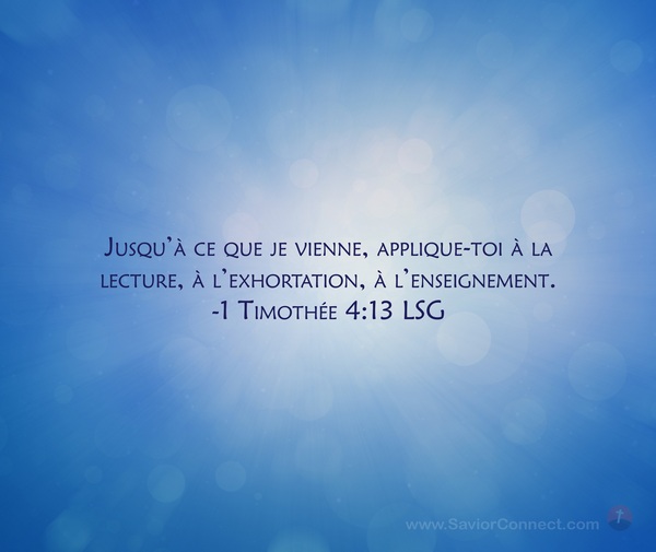 Jusqu'à ce que je vienne, applique-toi à la lecture, à l'exhortation, à l'enseignement. -1 Timothée 4:13 LSG