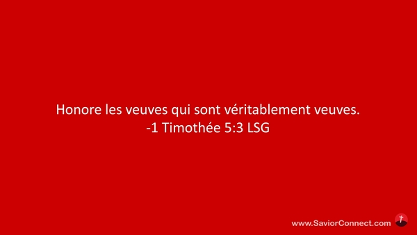 Honore les veuves qui sont véritablement veuves. -1 Timothée 5:3 LSG