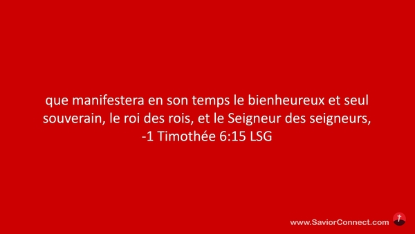 que manifestera en son temps le bienheureux et seul souverain, le roi des rois, et le Seigneur des seigneurs, -1 Timothée 6:15 LSG