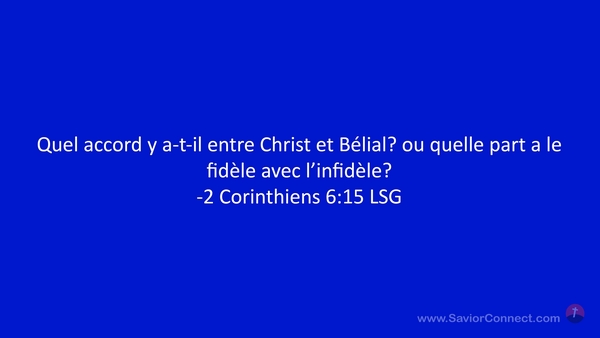 Quel accord y a-t-il entre Christ et Bélial? ou quelle part a le fidèle avec l'infidèle? -2 Corinthiens 6:15 LSG