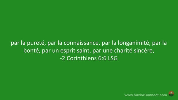 par la pureté, par la connaissance, par la longanimité, par la bonté, par un esprit saint, par une charité sincère, -2 Corinthiens 6:6 LSG