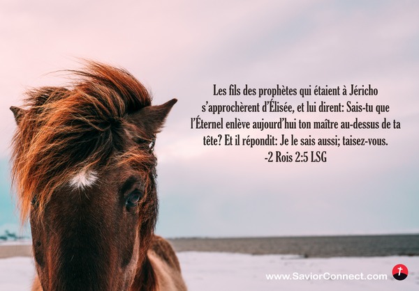 Les fils des prophètes qui étaient à Jéricho s'approchèrent d'Élisée, et lui dirent: Sais-tu que l'Éternel enlève aujourd'hui ton maître au-dessus de ta tête? Et il répondit: Je le sais aussi; taisez-vous. -2 Rois 2:5 LSG