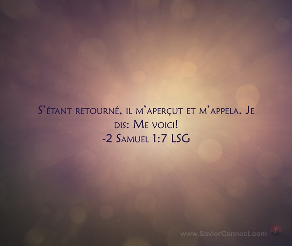 S'étant retourné, il m'aperçut et m'appela. Je dis: Me voici! -2 Samuel 1:7 LSG
