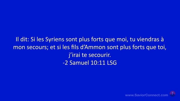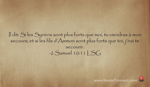 Il dit: Si les Syriens sont plus forts que moi, tu viendras à mon secours; et si les fils d'Ammon sont plus forts que toi, j'irai te secourir. -2 Samuel 10:11 LSG