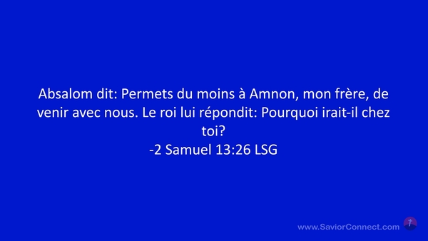 Absalom dit: Permets du moins à Amnon, mon frère, de venir avec nous. Le roi lui répondit: Pourquoi irait-il chez toi? -2 Samuel 13:26 LSG