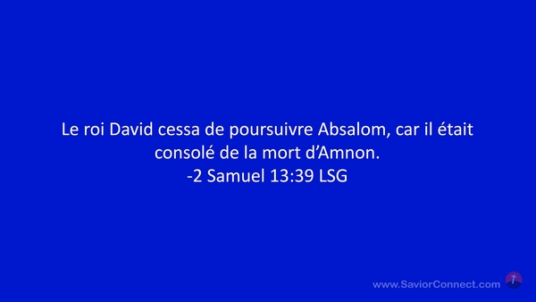 Le roi David cessa de poursuivre Absalom, car il était consolé de la mort d'Amnon. -2 Samuel 13:39 LSG