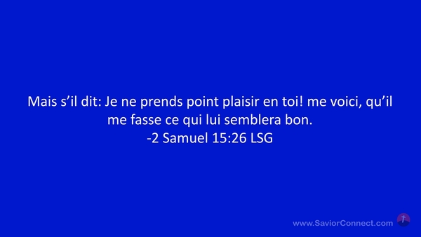 Mais s'il dit: Je ne prends point plaisir en toi! me voici, qu'il me fasse ce qui lui semblera bon. -2 Samuel 15:26 LSG