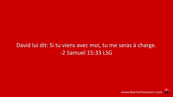 David lui dit: Si tu viens avec moi, tu me seras à charge. -2 Samuel 15:33 LSG