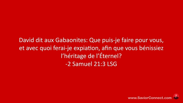 David dit aux Gabaonites: Que puis-je faire pour vous, et avec quoi ferai-je expiation, afin que vous bénissiez l'héritage de l'Éternel? -2 Samuel 21:3 LSG