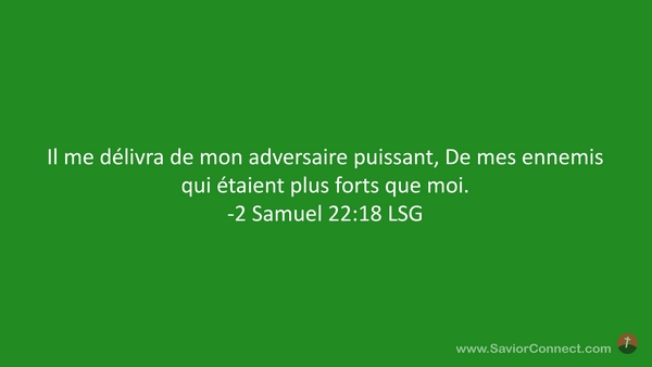 Il me délivra de mon adversaire puissant, De mes ennemis qui étaient plus forts que moi. -2 Samuel 22:18 LSG