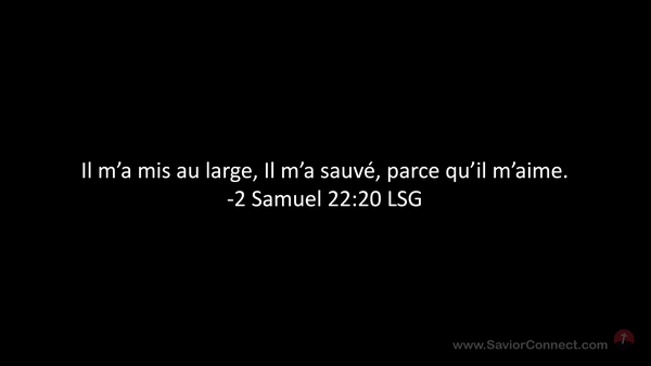 Il m'a mis au large, Il m'a sauvé, parce qu'il m'aime. -2 Samuel 22:20 LSG