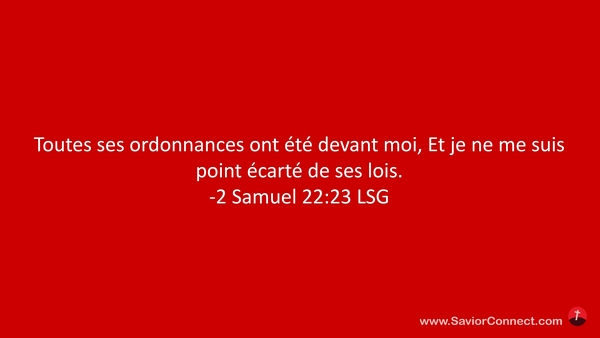 Toutes ses ordonnances ont été devant moi, Et je ne me suis point écarté de ses lois. -2 Samuel 22:23 LSG