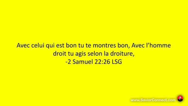 Avec celui qui est bon tu te montres bon, Avec l'homme droit tu agis selon la droiture, -2 Samuel 22:26 LSG