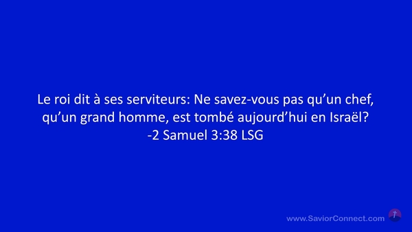 Le roi dit à ses serviteurs: Ne savez-vous pas qu'un chef, qu'un grand homme, est tombé aujourd'hui en Israël? -2 Samuel 3:38 LSG