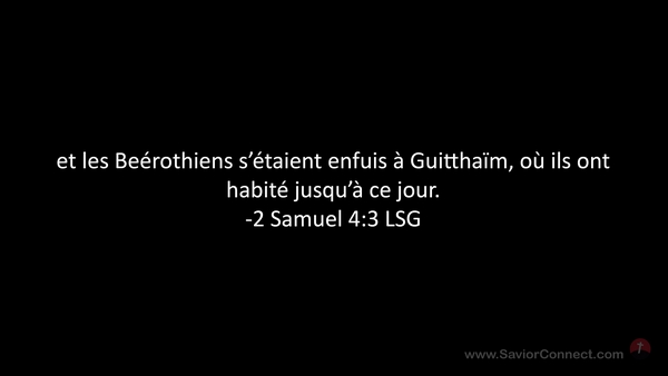 et les Beérothiens s'étaient enfuis à Guitthaïm, où ils ont habité jusqu'à ce jour. -2 Samuel 4:3 LSG