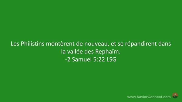 Les Philistins montèrent de nouveau, et se répandirent dans la vallée des Rephaïm. -2 Samuel 5:22 LSG