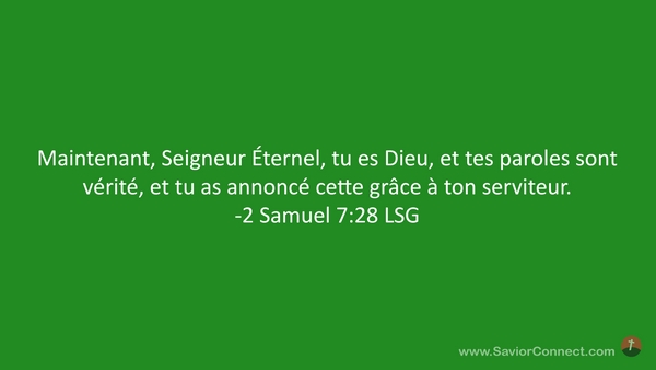 Maintenant, Seigneur Éternel, tu es Dieu, et tes paroles sont vérité, et tu as annoncé cette grâce à ton serviteur. -2 Samuel 7:28 LSG