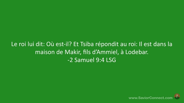 Le roi lui dit: Où est-il? Et Tsiba répondit au roi: Il est dans la maison de Makir, fils d'Ammiel, à Lodebar. -2 Samuel 9:4 LSG