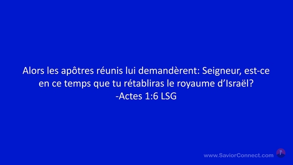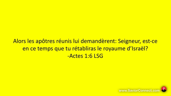 Alors les apôtres réunis lui demandèrent: Seigneur, est-ce en ce temps que tu rétabliras le royaume d'Israël? -Actes 1:6 LSG