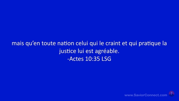 mais qu'en toute nation celui qui le craint et qui pratique la justice lui est agréable. -Actes 10:35 LSG