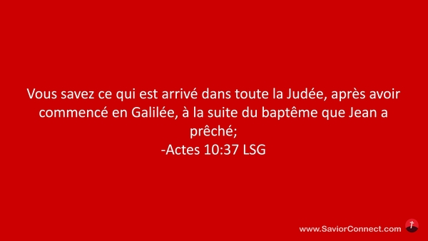 Vous savez ce qui est arrivé dans toute la Judée, après avoir commencé en Galilée, à la suite du baptême que Jean a prêché; -Actes 10:37 LSG