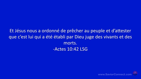 Et Jésus nous a ordonné de prêcher au peuple et d'attester que c'est lui qui a été établi par Dieu juge des vivants et des morts. -Actes 10:42 LSG