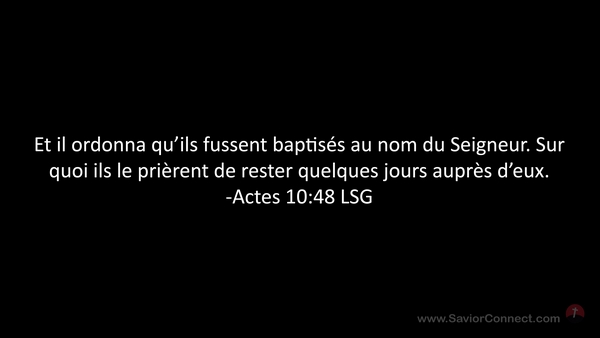 Et il ordonna qu'ils fussent baptisés au nom du Seigneur. Sur quoi ils le prièrent de rester quelques jours auprès d'eux. -Actes 10:48 LSG
