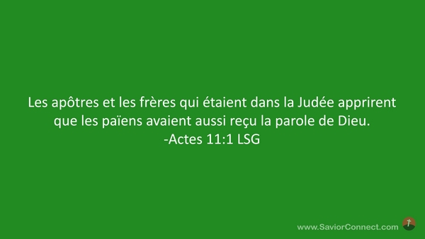 Les apôtres et les frères qui étaient dans la Judée apprirent que les païens avaient aussi reçu la parole de Dieu. -Actes 11:1 LSG