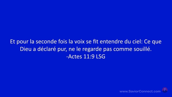 Et pour la seconde fois la voix se fit entendre du ciel: Ce que Dieu a déclaré pur, ne le regarde pas comme souillé. -Actes 11:9 LSG