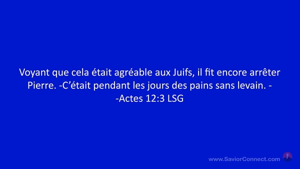 Voyant que cela était agréable aux Juifs, il fit encore arrêter Pierre. -C'était pendant les jours des pains sans levain. - -Actes 12:3 LSG