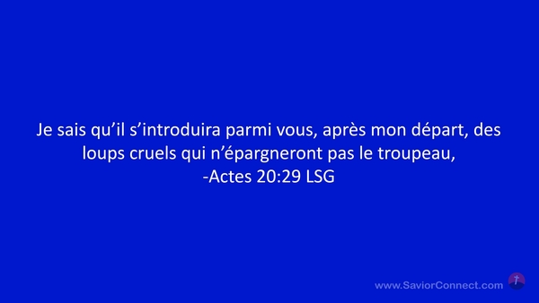 Je sais qu'il s'introduira parmi vous, après mon départ, des loups cruels qui n'épargneront pas le troupeau, -Actes 20:29 LSG