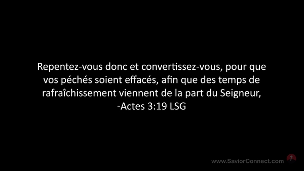 Repentez-vous donc et convertissez-vous, pour que vos péchés soient effacés, afin que des temps de rafraîchissement viennent de la part du Seigneur, -Actes 3:19 LSG