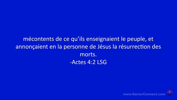 mécontents de ce qu'ils enseignaient le peuple, et annonçaient en la personne de Jésus la résurrection des morts. -Actes 4:2 LSG