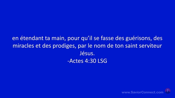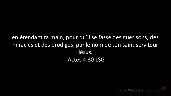 en étendant ta main, pour qu'il se fasse des guérisons, des miracles et des prodiges, par le nom de ton saint serviteur Jésus. -Actes 4:30 LSG