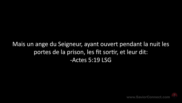 Mais un ange du Seigneur, ayant ouvert pendant la nuit les portes de la prison, les fit sortir, et leur dit: -Actes 5:19 LSG