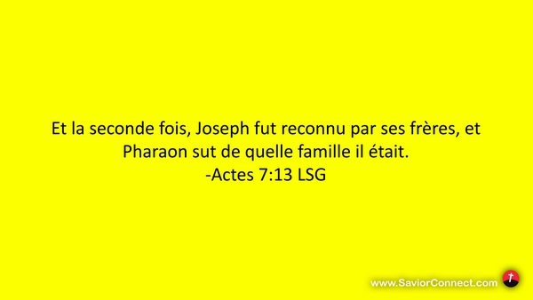 Et la seconde fois, Joseph fut reconnu par ses frères, et Pharaon sut de quelle famille il était. -Actes 7:13 LSG