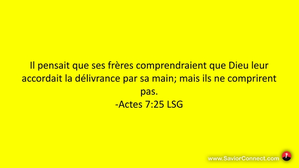 Il pensait que ses frères comprendraient que Dieu leur accordait la délivrance par sa main; mais ils ne comprirent pas. -Actes 7:25 LSG