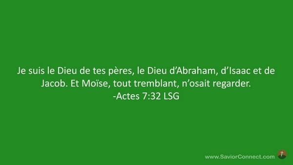 Je suis le Dieu de tes pères, le Dieu d'Abraham, d'Isaac et de Jacob. Et Moïse, tout tremblant, n'osait regarder. -Actes 7:32 LSG