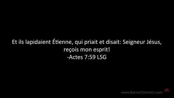 Et ils lapidaient Étienne, qui priait et disait: Seigneur Jésus, reçois mon esprit! -Actes 7:59 LSG