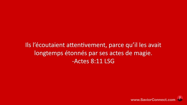 Ils l'écoutaient attentivement, parce qu'il les avait longtemps étonnés par ses actes de magie. -Actes 8:11 LSG