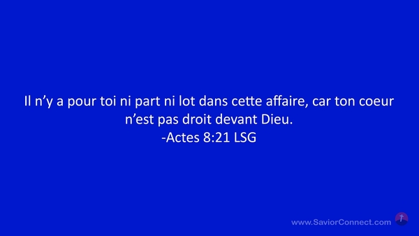 Il n'y a pour toi ni part ni lot dans cette affaire, car ton coeur n'est pas droit devant Dieu. -Actes 8:21 LSG