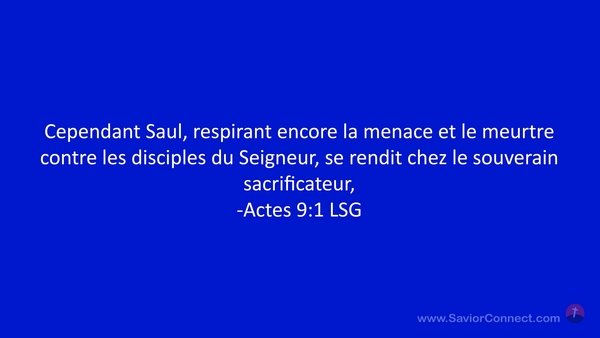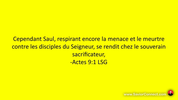 Cependant Saul, respirant encore la menace et le meurtre contre les disciples du Seigneur, se rendit chez le souverain sacrificateur, -Actes 9:1 LSG