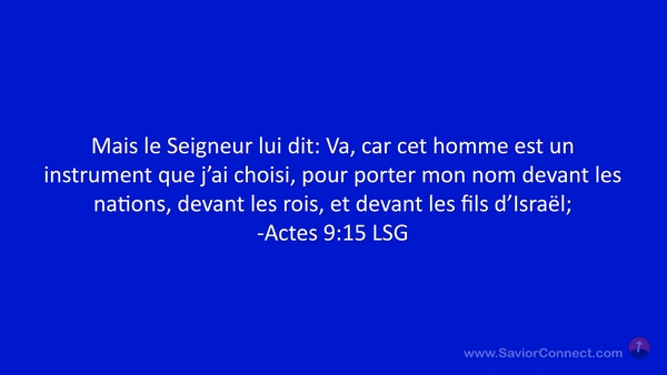 Mais le Seigneur lui dit: Va, car cet homme est un instrument que j'ai choisi, pour porter mon nom devant les nations, devant les rois, et devant les fils d'Israël; -Actes 9:15 LSG