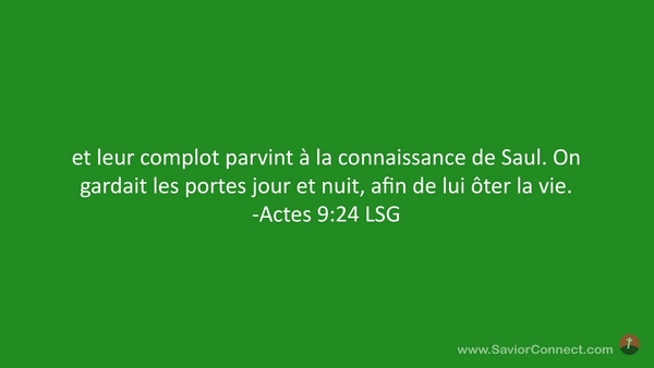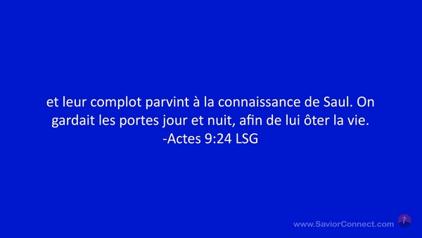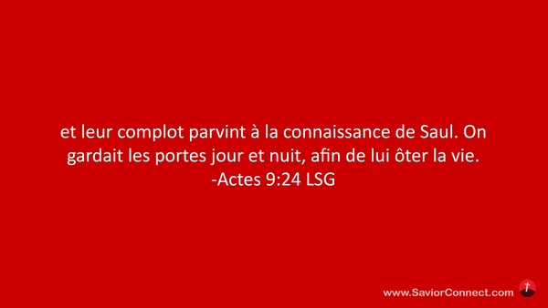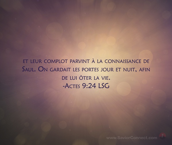 et leur complot parvint à la connaissance de Saul. On gardait les portes jour et nuit, afin de lui ôter la vie. -Actes 9:24 LSG