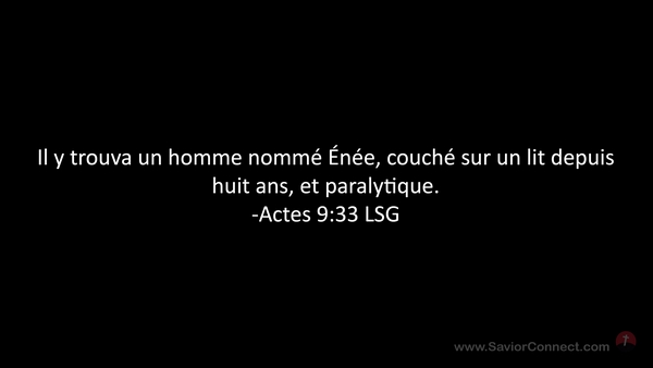 Il y trouva un homme nommé Énée, couché sur un lit depuis huit ans, et paralytique. -Actes 9:33 LSG