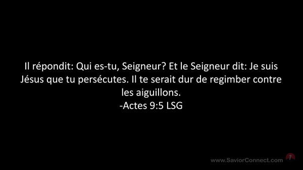 Il répondit: Qui es-tu, Seigneur? Et le Seigneur dit: Je suis Jésus que tu persécutes. Il te serait dur de regimber contre les aiguillons. -Actes 9:5 LSG